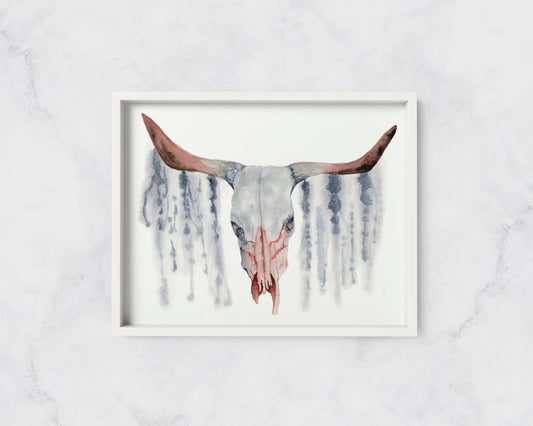 Cow Skull in Watercolour Art Print