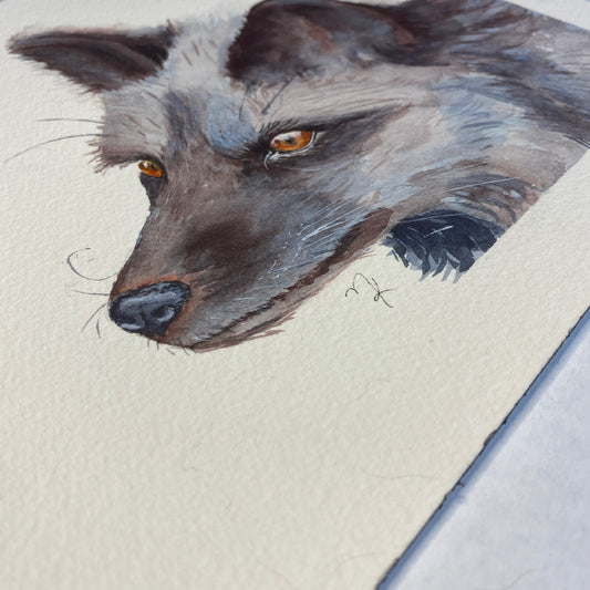 Red Fox Black Stage Original Watercolour Painting